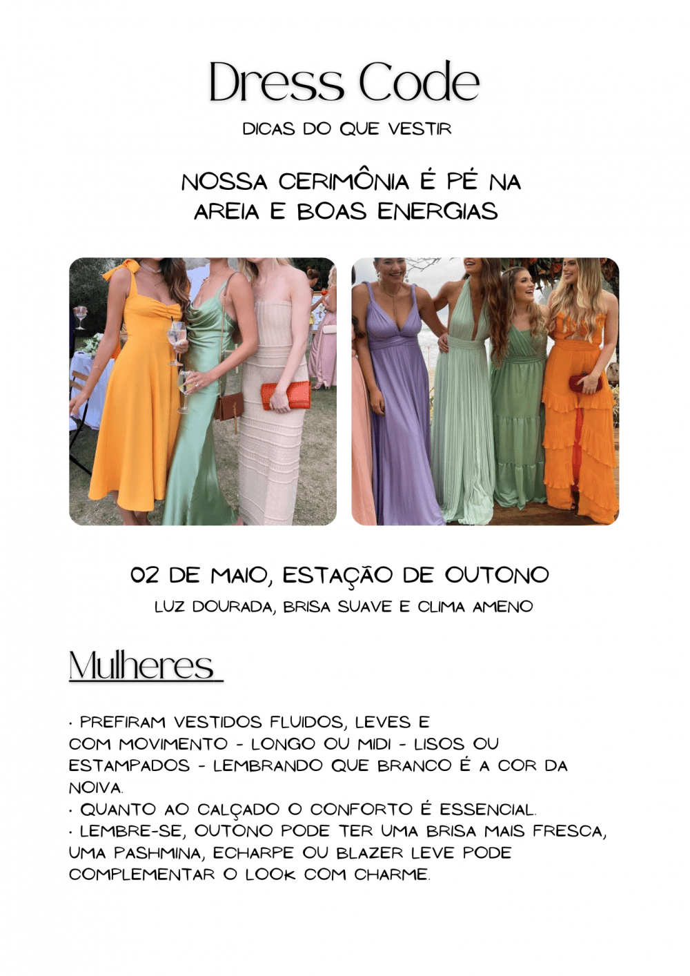 Aqui vocês encontrarão dicas sobre hospedagem, salão de beleza, trajes, estacionamento, entre outras informações importantes.